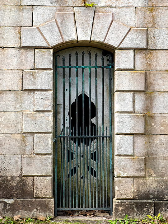 The interior of the mausoleum was lined with oak paneling and was large enough to hold up eight coffins. Trempealeau stone was cut for the front of structure. The size of the vault is 12 ft. in front and 13 ft. It is the only mausoleum in Woodlawn built into the bank of the terrace.