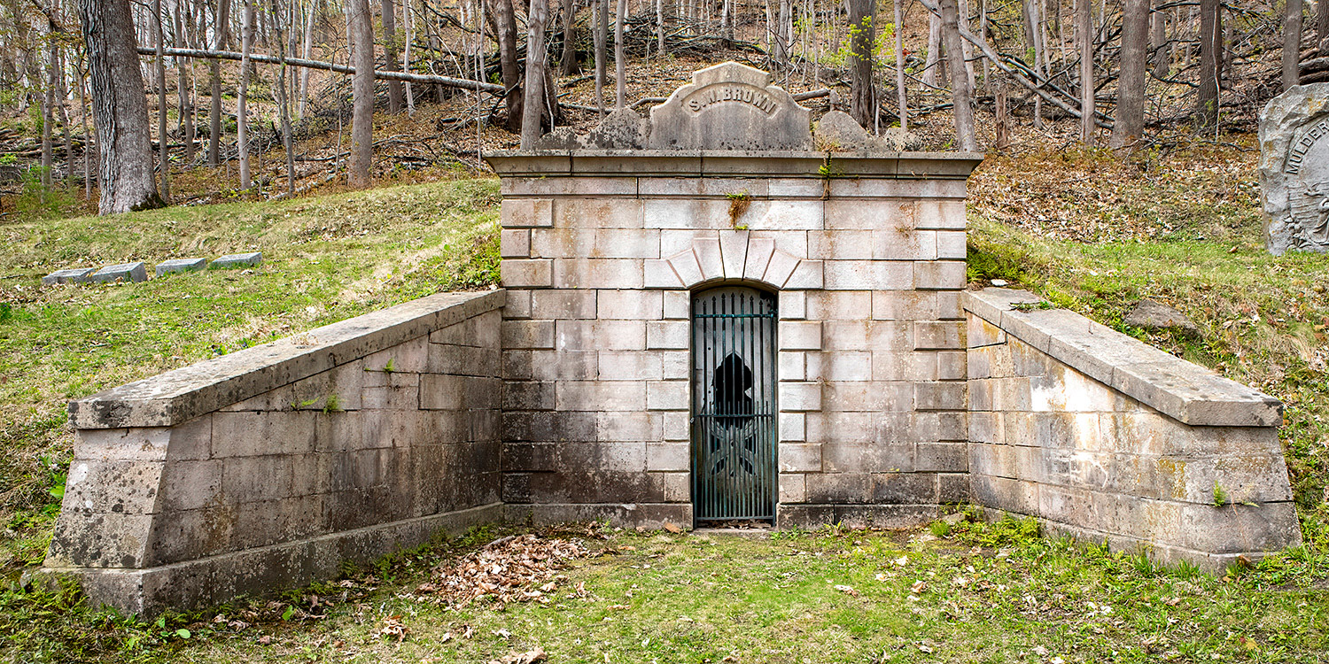 Brown mausoleum was built in the late 1870 by Mrs. Lois Brown for her husband, Seymour Wilder Brown who died on February 26, 1870.